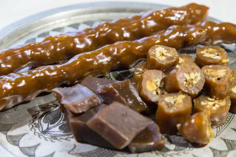 Üzüm şırası, ocağa alınan büyük bir tencerede kaynatılır. Şıra kaynarken ayrı bir kapta un ve nişastaya biraz şıra karıştırılarak cıvık bir hamur yapılır. Hamur, içinde topak kalmaması için elekten geçirilir, koyu kıvama dönmeye başlayınca karıştıra karıştıra şıraya ilave edilir. Şıranın yüzü buruşmaya başladığında pişmiş demektir, ocaktan alınır. Köfte yapılacaksa, pişen şıra sinilere dökülür, bir gün sonra baklava dilimi şeklinde kesilir, kuruması için bir hafta kadar serilir. Sonra bir bezin içine alınır. Cevizli sucuk yapılacaksa, şıra pişerken bir taraftan cevizler ayıklanır, 35-40 cm. uzunlukta iplere dizilir. Dizili cevizler, pişen şıraya batırılır ve iki ucu birbirine değmeyecek şekilde çatal bir çubuğa bağlanarak tele ya da ağaca asılır. Biraz kuruyunca şıraya tekrar batırılır, asılır. Bu işlem üç kez tekrar edildikten sonra sucuklar bir hafta, on gün kadar kurumaya bırakılır.