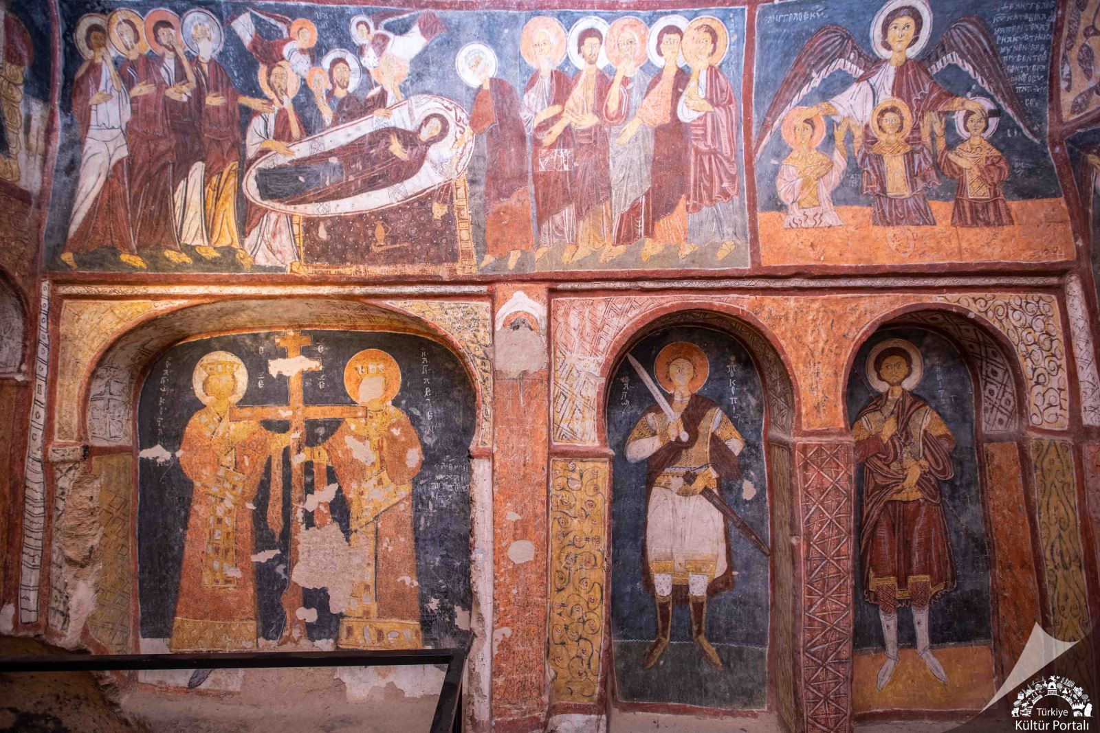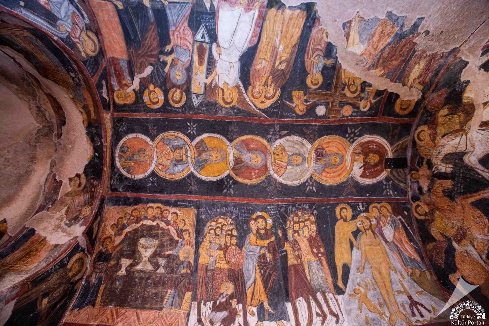 Kilise, ikonografisi ile bölgedeki diğer kiliselerden ayrılmaktadır. Kilisenin apsisinde Deesis, ön cephesinde kuş tasvirleri altında Müjde, tonozunda madalyonlar içerisinde aziz tasvirleri; tonozun güney kanadında Son Yemek, İhanet, Vaftiz; altında Meryem’in Ölümü, kuzey kanadında İsa’nın Çarmıhtan İndirilmesi, Kadınlar Boş Mezar Başında, İsa’nın Cehenneme İnişi ile batı ve güney duvarında ise Kapadokya bölgesinde oldukça nadir olarak resmedilen Son Yargı Sahnesi yer almaktadır.