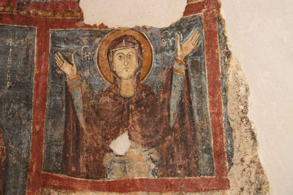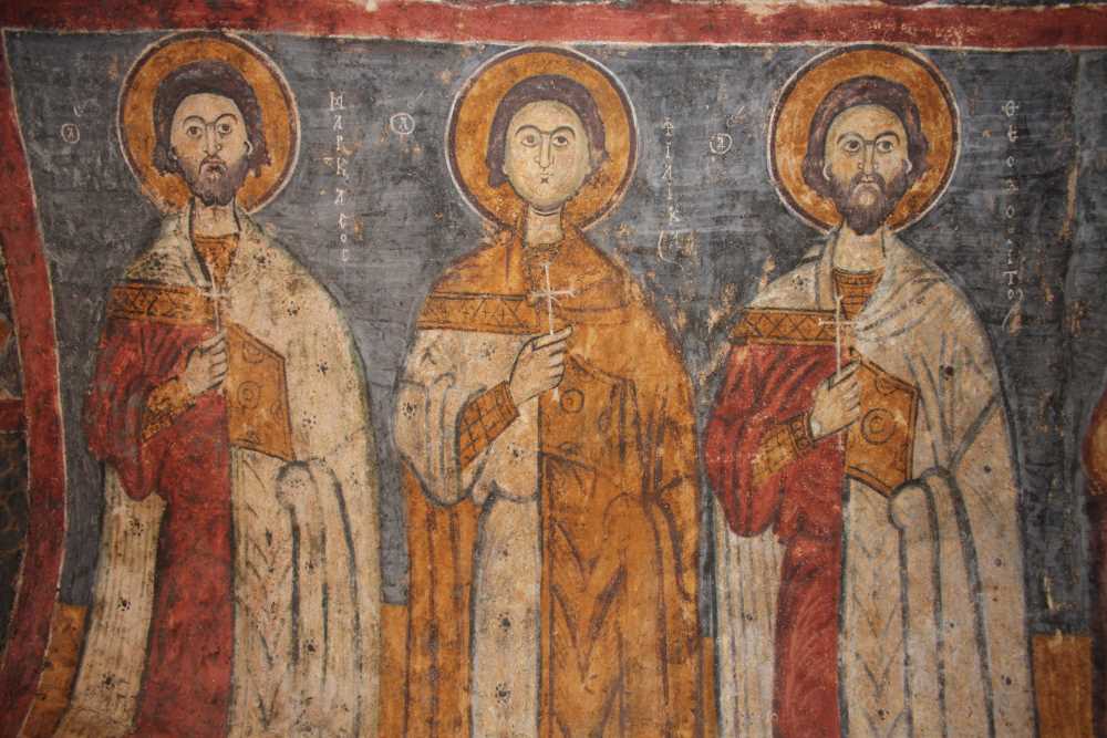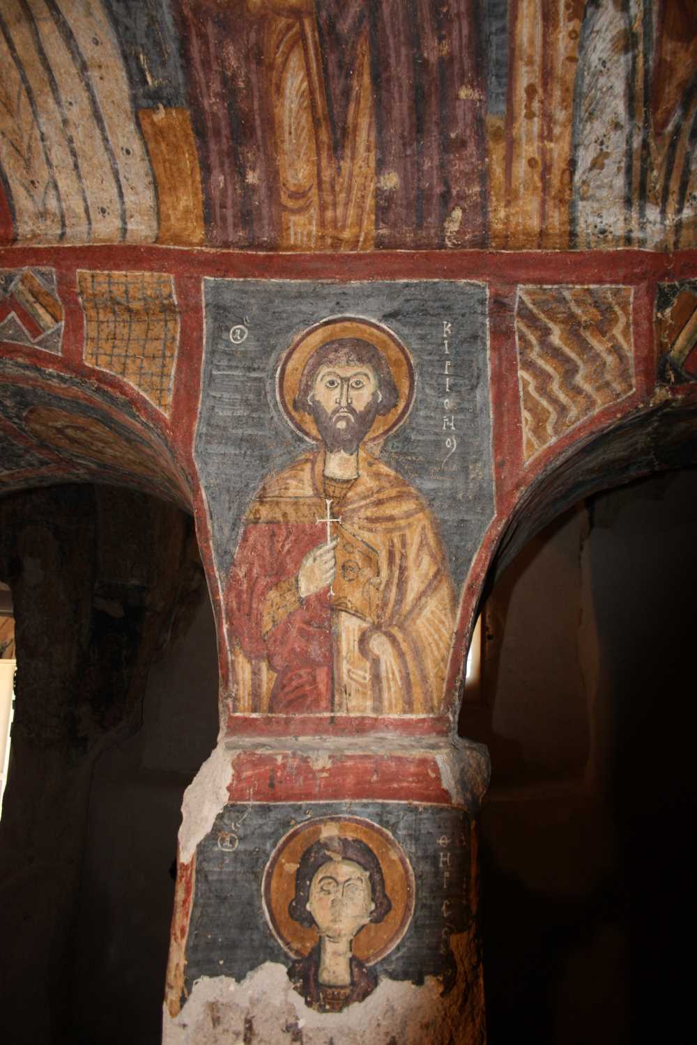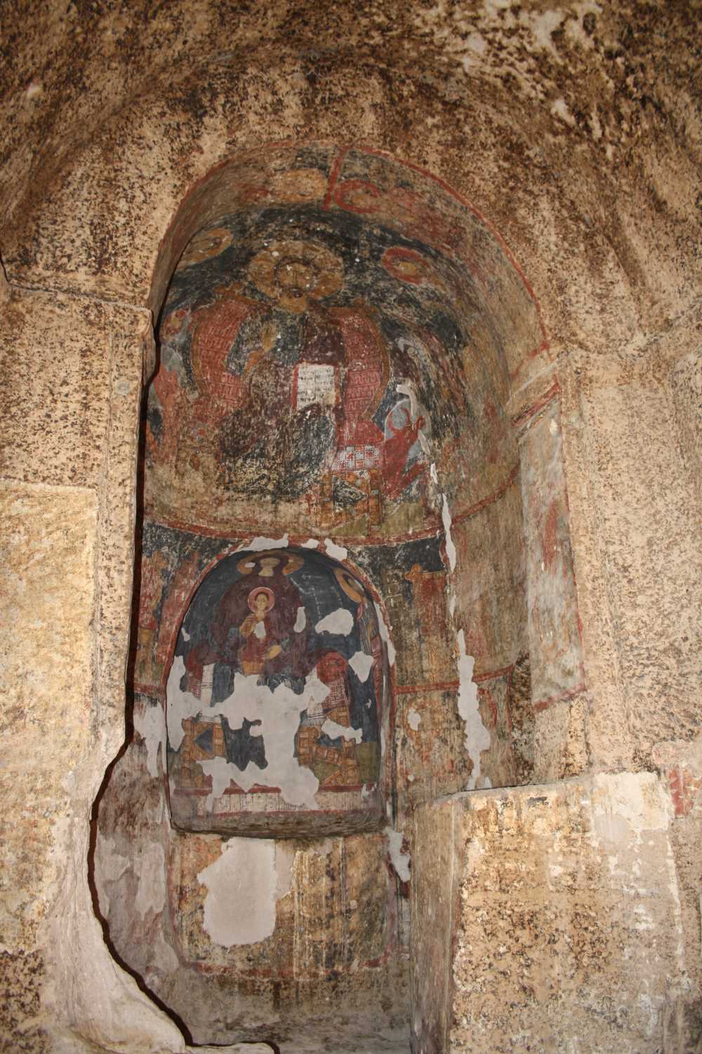 Kilisenin oldukça iyi korunmuş olan fresklerindeki sahneler bantlarla birbirinden ayrılmıştır.
