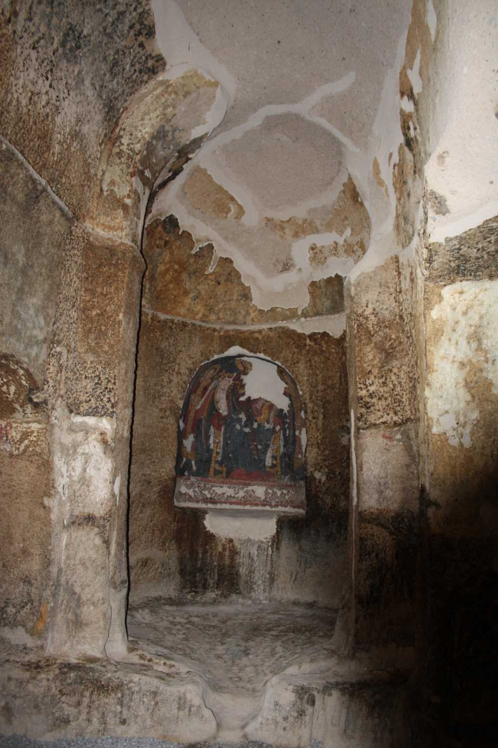 Yer altında bulunan İki nefli, iki apsisli ve beşik tonozlu olan kilisenin narteksi yıkılmıştır.
