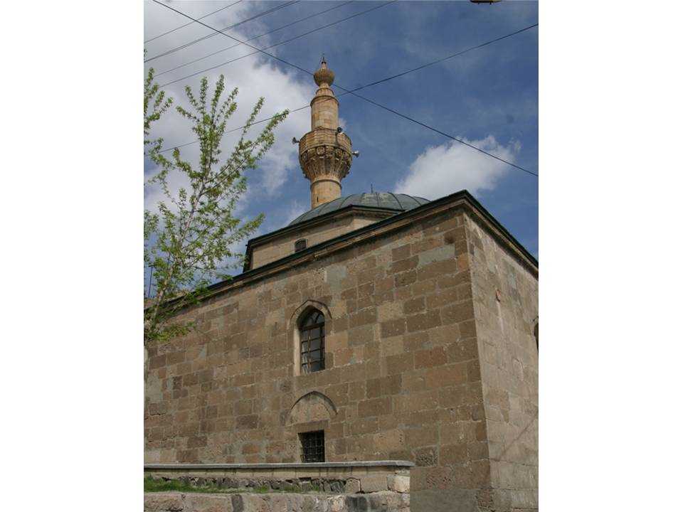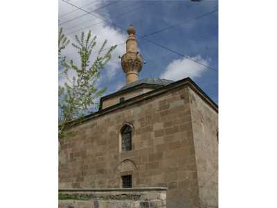 Raşit Bey Mahallesinde Eski Konak Sokak ile Kara Camii Sokağın kesiştiği noktada yer alan camii, oldukça iyi durumdadır. Bir avlu içerisinde yer alan camii, basık kemerli avlu kapısı üzerinde oldukça büyük boyutlu mermer kitabe levhası bulunur. Nemden kabarmış levha üzerinde oniki satırlık Osmanlıca kitabesi bulunur. Aynı zamanda harime girişi sağlayan kapı üzerinde de oldukça büyük boyutlu koyu renk mermer üzerine dört sütundan oluşan yedi satırlık Osmanlıca kitabesi bulunan yapı, 1716 yılında inşa edilmiştir. Düzgün kesme taşlarla şaşırtmalı teknikle yapılmış olup, plan şeması dönemi ve kitabeleri nedeni ile döneminin özelliklerini yansıtan oldukça önemli bir eserdir. Avlusu camii ile birlikte düşünülmüş yapının kuzeyinde iki oval paye üzerine çift yönlü kemer atılımı ile biçimlenen üç bölümlü son cemaat yeri oluşturulmuştur. Her bir birimi pandantif geçişli kubbe ile örtülü olan son cemaat yerinin batı duvarından minareye çıkış merdiveni bulunur. Kare kaideli, silindirik gövdeli minaresi, şerefe altındaki bitkisel bezemeli süslemeleri ve soğan kubbe biçimindeki külahı ile oldukça ünik bir özellik yansıtmaktadır. Harim bölümü yaklaşık kare planlı ve pandantif geçişli kubbe ile örtülüdür. Kubbenin sekizgen kasnak üzerine oturtulduğu yapının batısında kare düzenleme bozularak bir eyvan biçimlendirilmiştir. Eyvanın batı duvarındaki bir kapı ile cami inşa edilmeden önce mescid olarak kullanılmış, bugün odun deposu olan düzensiz planlı kayaya oyma bir mekana girilir. Minberi ve mihrabı taş olan yapının örtü sistemi dıştan kurşun kaplamadır. Caminin avlusunun batı duvarında sivri kemerli bir niş içerisinde, bugün kullanılmayan bir çeşme bulunur. Çeşmenin musluk taşı üzerinde iki üçgen ile biçimlenen altı kollu yıldız kompozisyonu dikkatimizi çeker. |