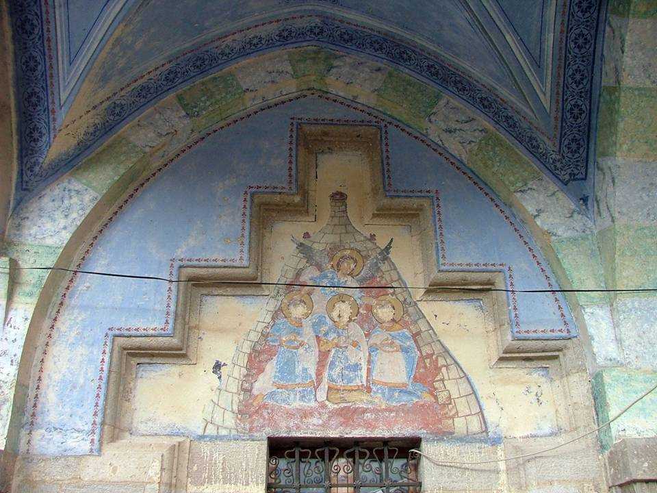 1841 inşa tarihli, kitabesini muhafaza eden kilise bugün camii olarak ibadete açıktır. Yapı muntazam kesme taş malzeme ile yapılmıştır. Beylikler dönemi camilerinde olduğu gibi son cemaat mahalini andıran üç bölümlü üzeri aynalı Yıldız tonoz şeklinde örtülmüş sütun ve kemerlerle desteklenmiş bölümün bulunduğu batı duvarındandır. Bu desteklerin köşelerde bulunanı kare, ortada kalan ikisi yuvarlak formlu ayaklardır. Bunlar duvara kemerler ile bağlanmıştır. Kapının etrafını çepeçevre dolanan kabartma tekniği ile yapılmış üzüm dalları ve salkımları dekore edilmiştir. Duvarlarda kısmen tahrip edilmiş freskler vardır. Kilisenin esas mekanı kare olup, altı adet sütun ile doğu batı doğrultusunda üç nef meydana getirilmiştir. Bu nefler üç yarım daire apsid olarak kendini gösterir. Ahşap malzeme değişik şekildeki motiflerle süslenmiştir. Üst örtüsü dışardan çapraz kırma çatıdır. |