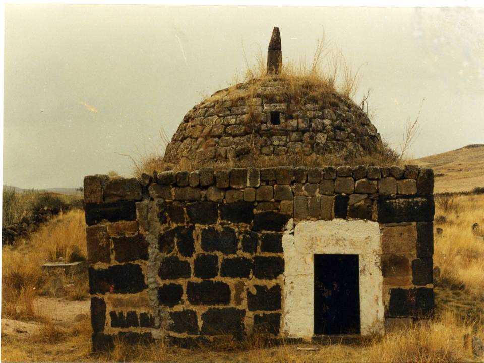Bazalt kesmetaştan yapılmış kareye yakın planlı üstü volkanik tüf taşlar kullanılarak yığma şeklinde bindirme tekniyle örtülmüştür. Türbe girişi doğudan olup, kuzeyde portatif bir taşla açılıp kapanan bir penceresi vardır. İçinde bir sanduka H 1173, 1208, 1220, 1254 tarihleri ve yazılar vardır. |