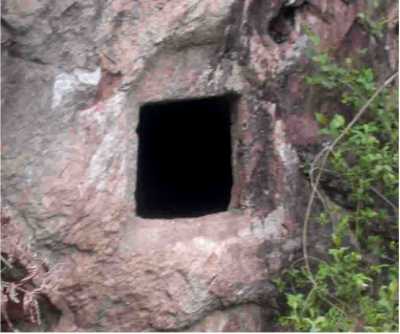 her iki yanında yaklaşık 3,5 cm. çapındaki deliklere yer verilmiştir. Tahrip olmuş bu mil yuvalarından mezar girişinin