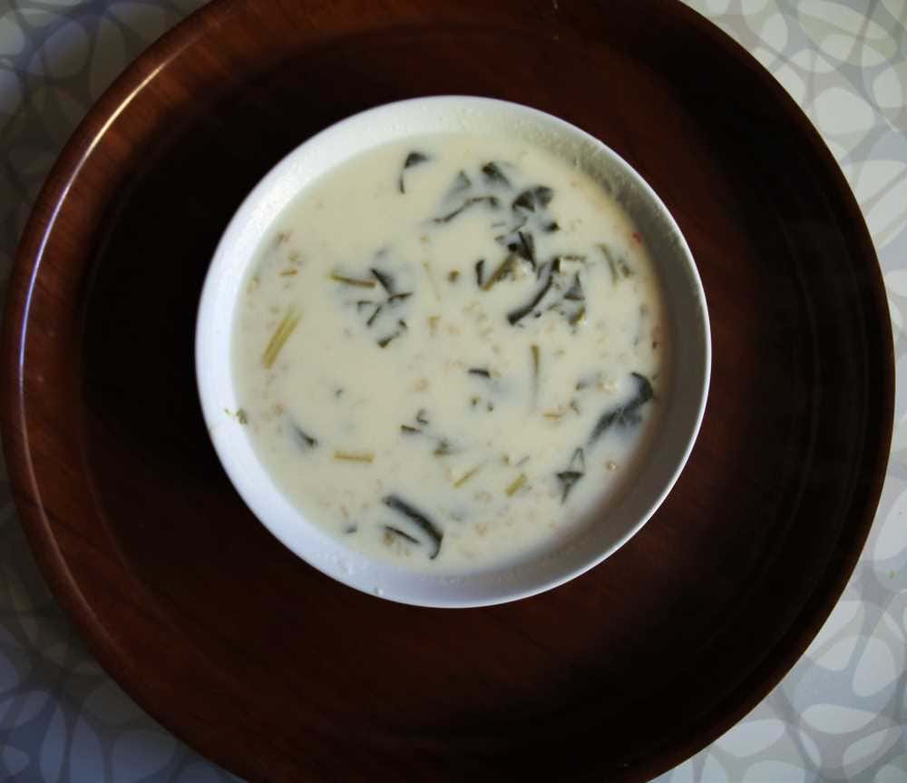 1 çay bardağı nohut bir gün önceden ılık suda bekletilir. Daha sonra dövme ve nohut birlikte iyice pişirilir. Nane ve ıspanak sirkeli suda bekletilerek yıkanır ve doğranıp kullanılmaya hazır hale getirilir. 1 kg yoğurda 1 yumurta kırılır.1 yemek kaşığı un ilave edilerek iyice çırpılır. Yoğurdun kesilmemesi için yüksek ateşte ve sürekli karıştırılarak kaynatılır. Kaynadıktan sonra pişirilen dövme ve nohut ilave edilip 10 dakika daha kaynatılır. İçerisine nane yaprakları ilave edilir. Nane yaprakları biraz sarardıktan sonra ıspanak ilave edilir. Son olarak ateşten alınmadan önce 2 su bardağı kaynamış su ve tuz eklenerek servise hazır hale getirilir.