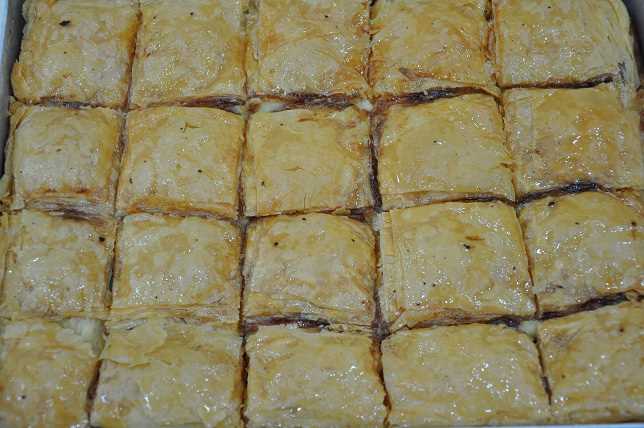 İyice yoğrulup bir süre dinlendirilen hamurundan tepsinin büyüklüğüne göre baklava yufkası açılır. Yufkaların yarısı yağlanmış tepsiye serilip üzerine hazırlanan muhallebi yayılıp üzerine kalan yufkalar serilir. Tereyağı eritilip üstüne dökülerek arzuya göre kare veya üçgen şekilde kesilerek fırına verilir. Piştikten sonra soğumaya bırakılır. Daha sonra üzerine şerbet gezdirilir.