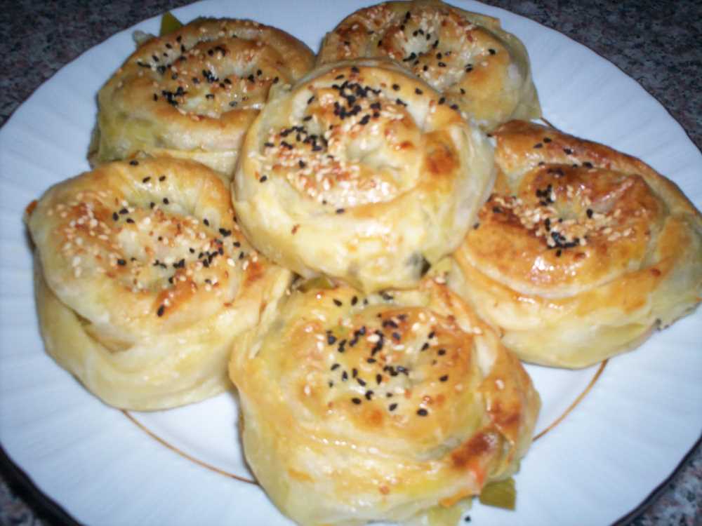 Tüm malzemeler karıştırılarak hamur hazırlanır, 1 saat dinlendirilir, yağlanmış fırın tepsisine yayılır. Yarım kg pırasa ince doğranır 100 gr margarin ile sote yapılır. Ateşten alınca içine 3 yumurta, 3 yemek kaşığı yoğurt, 3 yemek kaşığı un, 1 çay kaşığı tuz, 1 çay kaşığı karabiber konulur. Hazırlanan iç hamurun üzerine yayılır. Kaşar peyniri rendelenir, serpilir. Önceden ısıtılmış fırında pişirilir.