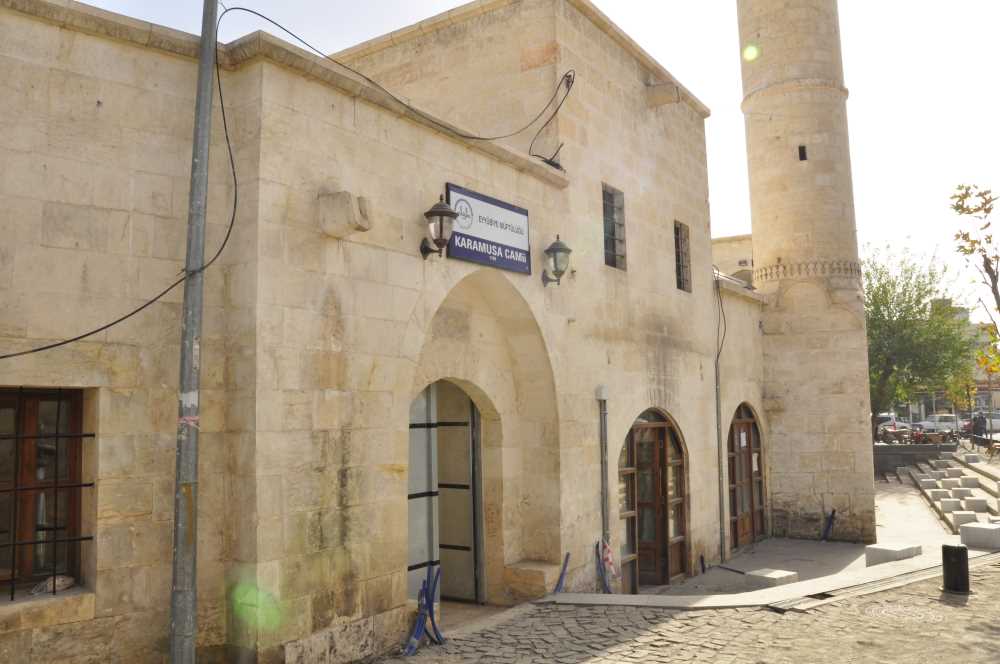 Cami, Beykapısı Mahallesi’nde yer almakta olup altı kitabesi bulunmaktadır. Maalesef camiyi yaptıran ve adını veren "Kara Musa" ismine kitabelerde rastlanamamıştır. Çünkü camiyi her tamir eden zat, yapıya kendi kitabesini yerleştirmiş ve önceki kitabeyi söktürmüştür. Böylece Urfadaki birçok eski camide olduğu gibi bu camide de eski kitabeler kaybolmuştur. Aslında Kara Musa Camii’ni 1552 tarihinde Kara Musa adında bir zat yaptırmıştır. Caminin batısı pencere altı kitabesinde; 1747 (hicri 1160) tarihinde tamir edildiği yazılı olup tamir edenin adı verilmemiştir. Son cemaat yeri kitabesinde; caminin tamirini 1671 (hicri 1082)’de Muhammed oğlu Abdurrahman Çelebi’nin yaptırdığı yazılıdır. Cami avlusunun batı kapısı kitabesinde ve minare kaidesi batı kitabesinde; Firuz Bey tarafından 1780 (hicri 1195)’te tamir edildiği yazılıdır. Caminin avlusunda güney kapı kitabesinde; Hacı Firuz Bey’in Kızıl Camii (Ulu Camii) ve Ağ Camii (Nimetullah Cami)’yi tamir ettirdiği, şehre çeşmeler yaptığı ve son olarak bu camiyi tamir ettirdiği yazılıdır. Tamir tarihi olarak 1780 (hicri 1195) tarihi verilmektedir.