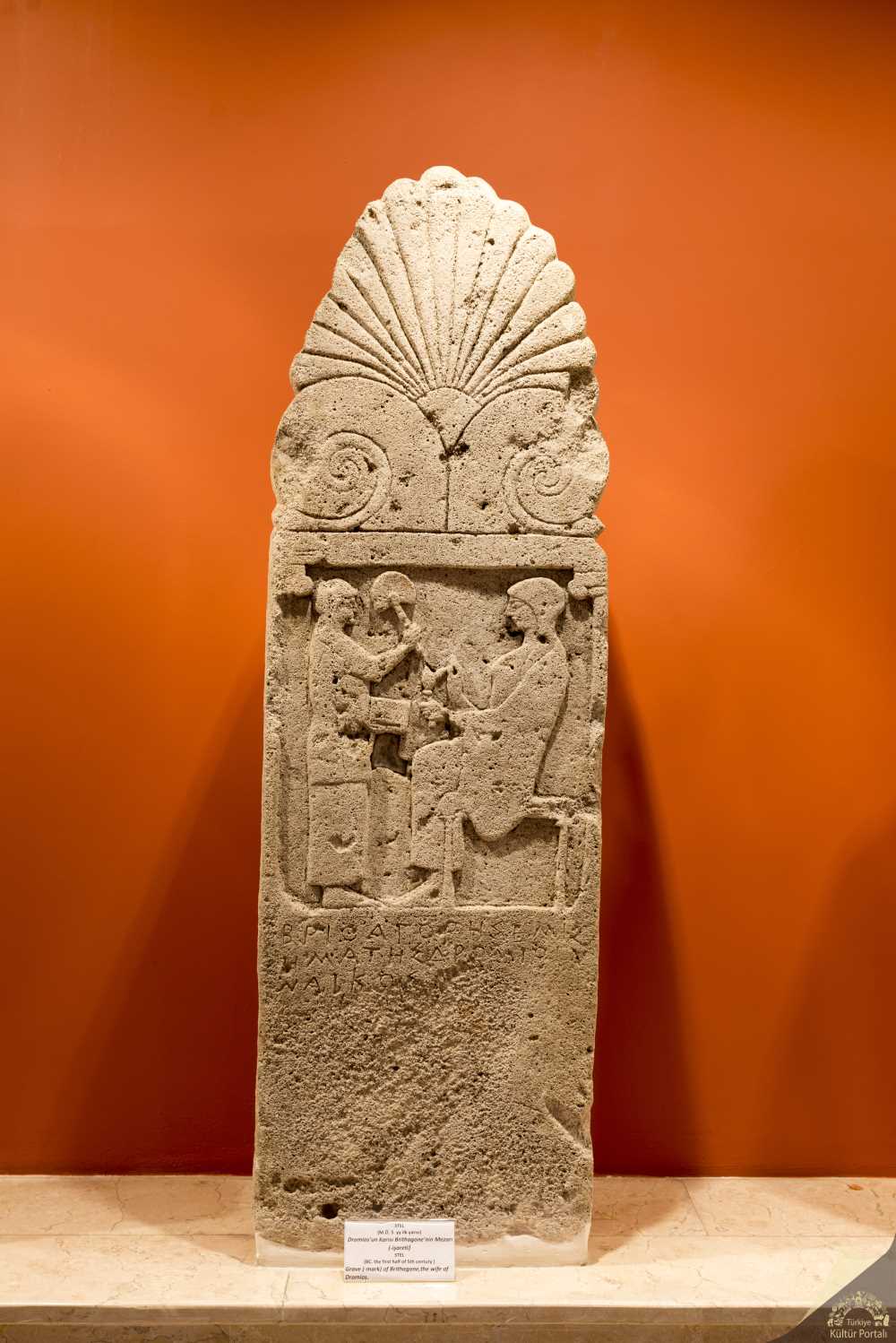 Taş Eserler Salonu: Bu bölüm ölü kültüyle ilgili olup, Anadolu'nun en eski mezar steli örnekler (Arkaik Çağ) kronolojik olarak sergilenmektedir. Ayrıca bu bölümde yer alan ve bir mezar anıtına ait olduğu düşünülen mermer "Geyik Parçalayan Aslanlar" grubu ve bir denizciye ait Lahit görülmeye değer nadir buluntulardandır.