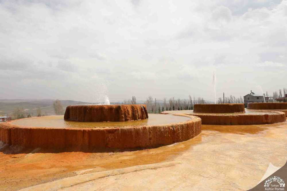 Limonit ve hematit içerikleri ile yeni bir görüntü oluşturan Altınkale Travertenleri Sıcak Çermik’te bulunmaktadır.