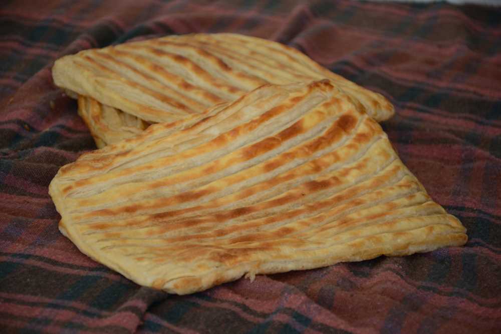 Un, su ve tuz ile yoğrulan hamurdan yumruk büyüklüğünde yumak alınır. Üzeri nemli bez örtülerek 5 dakika dinlendirilir. İnce bir yufka halinde açılır ve yüzeyi tamamen eritilmiş yağ ile yağlanır. Yağlanan yufka hamur tahtası üzerinde birbiri üzerine gelecek şekilde toplanıp sonra kendi etrafında döndürülerek yumak haline getirilir ve 15 dakika bekletilir. Oklava ya da merdane ile 1cm kalınlığında açılır ve tepsiye konur. Yüzüne yumurta sarısı sürüldükten sonra ince bir tahta spatül ile enine boyuna çizilerek baklava dilimi şekli verilir. Fırında pişirilir.