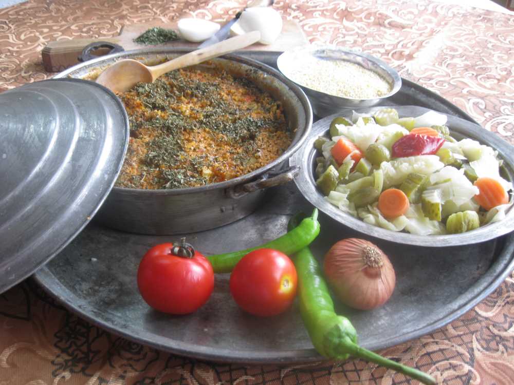 İnce doğranmış soğan, biber, patates kavrulur. Doğranmış domates ve salça eklenerek kavurmaya devam edilir. Su eklenir ve kaynayınca dolma içi (kırık yarma ince bulgur karışımı) ilave edilir. Baharatlar eklenerek suyunu çekene kadar pişirilir. Sıcakken, haşlanmış lahana ve turşu ile servis edilir.
