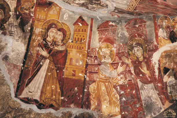 Sümela Manastırı’nda yer yer sökülerek alınmış olan ve oldukça harap bir görünüm taşıyan fresklerde işlenen başlıca konular İncil’den alınmış sahneler, Hz. İsa ve Meryem Ana’nın hayatı ile ilgili tasvirlerdir.