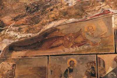 Manastırın ana ünitesini meydana getiren kaya kilisesinin ve ona bitişik şapelin iç ve dış duvarları fresklerle donatılmıştır. Kaya kilisesinin içinde avluya bakan duvarda III. Alexios dönemine ait fresklerin varlığı tespit edilmiştir. Şapeldeki freskler ise 18'inci yüzyılın başlarına tarihlenmektedir ve üç ayrı devirde yapılan üç tabaka görülmektedir. En alt tabakanın freskleri daha üstün niteliktedir.