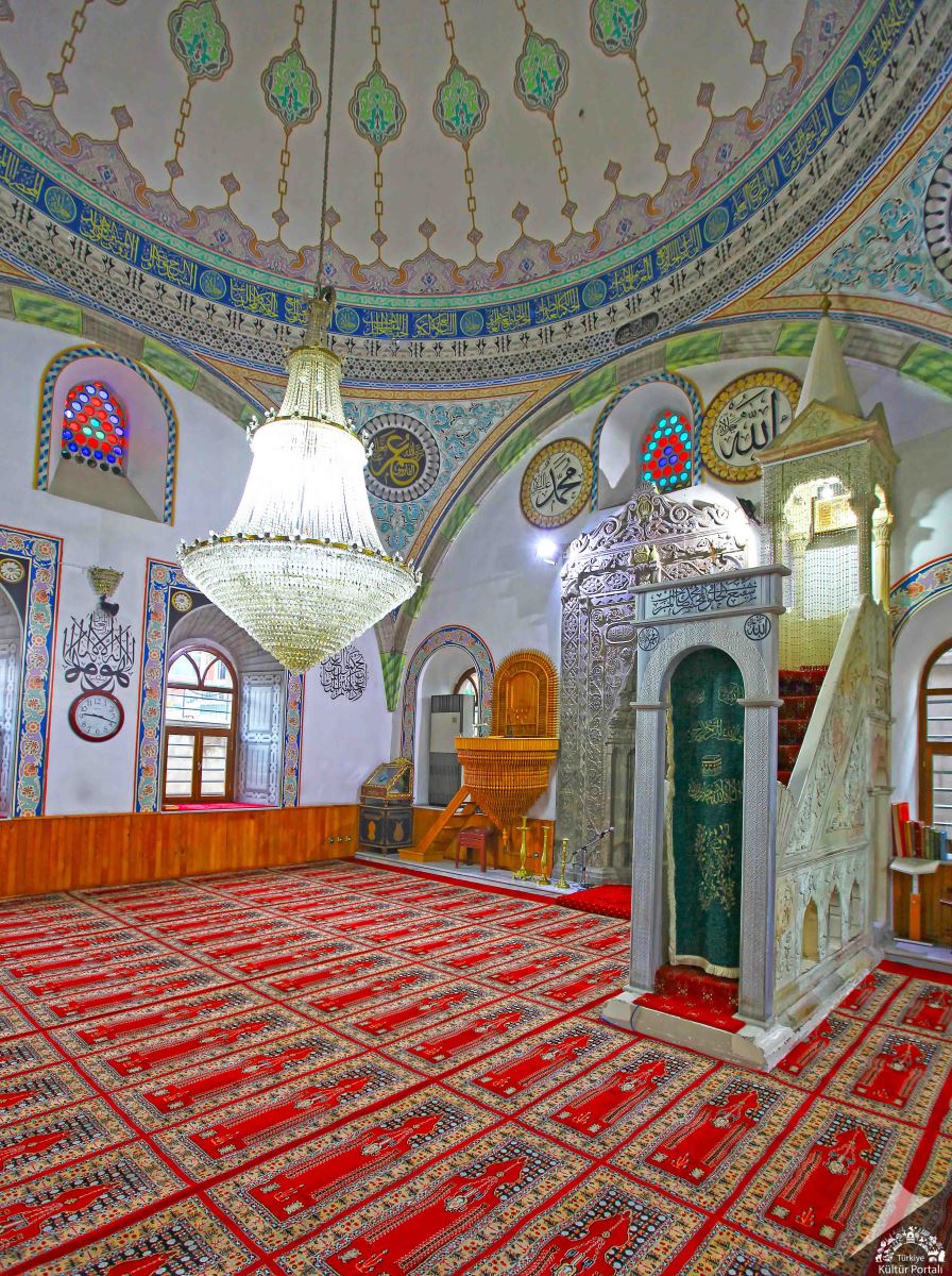 İç duvarları sıvalı olan caminin, kubbe etekleri ve içleri, pandantifleri, pencerelerin çevresi ve duvarlarında yağlı boya ile kalem işi süslemeler bulunmaktadır.