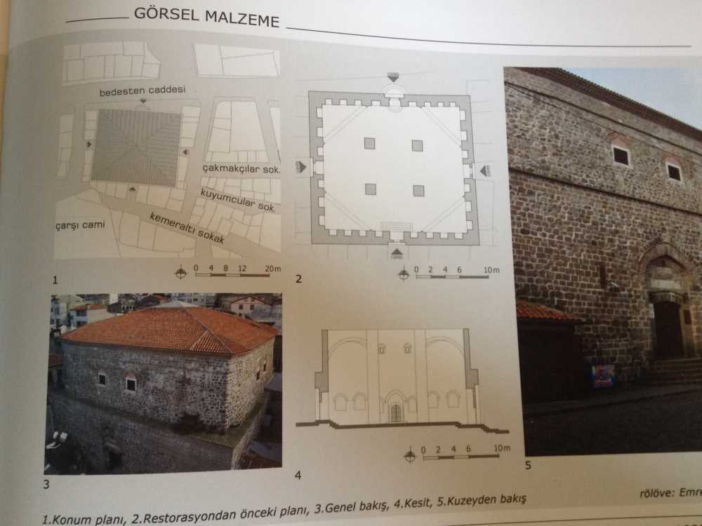 Semerciler Cami'nin batısında,Taşhan'ın Yakınında ve tarihi Trabzon Çarşısı'nın Merkezindedir.Kentin en eski ticaret yapısı olanBedesten 20.6 x22.6m.boyutları ile kareye yakın dikdörtgen planasahiptir. Özgün bir planlama belirtisi taşıyan Bedesten,Türk Bedestenleri tek kubbeli olan tek örnektir.