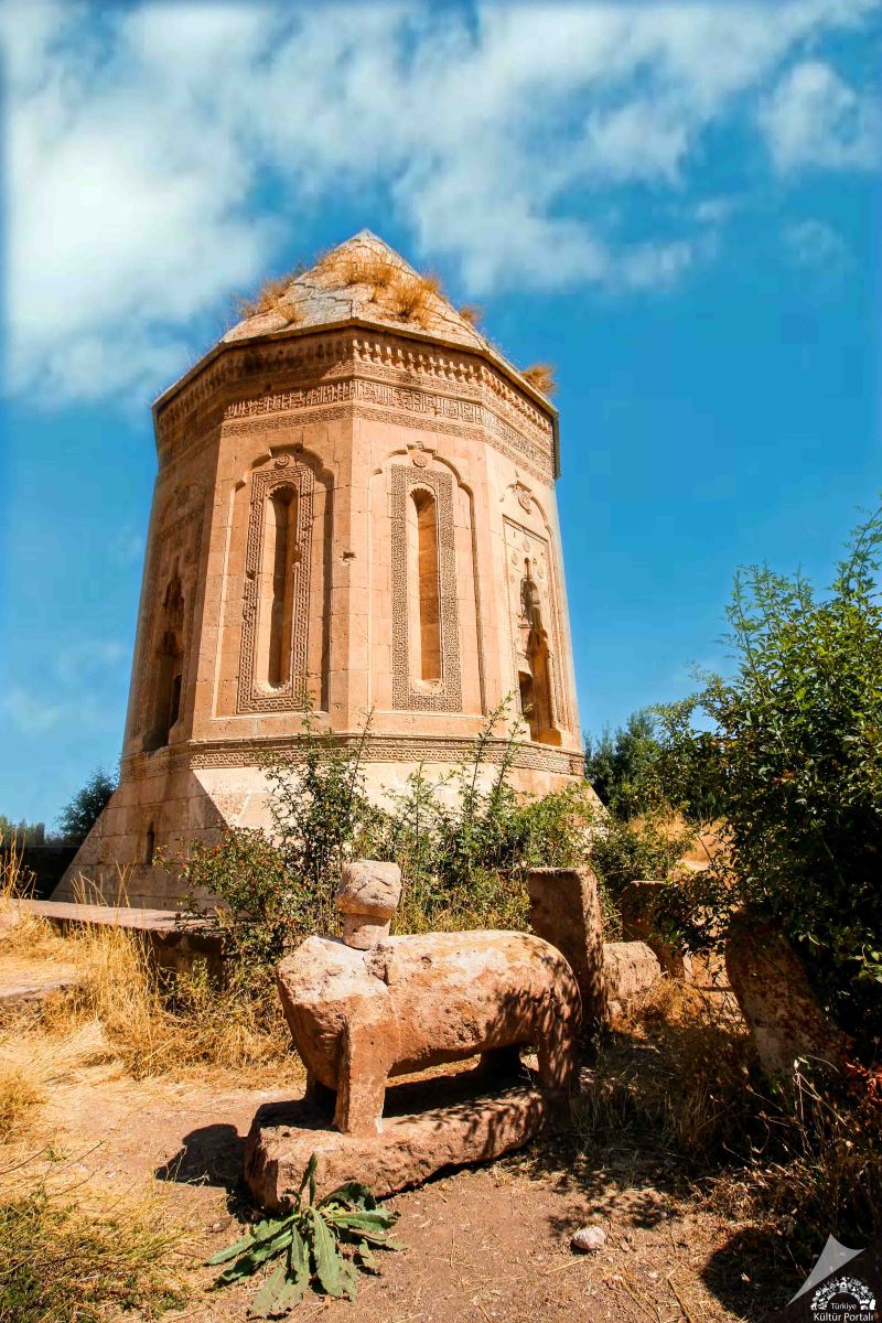 Ahlatlı Pehlivan oğlu Esed tarafından inşa edilmiştir. Bitkisel, geometrik ve yazılardan oluşan bezemeleriyle dikkat çeken kümbet, 2014- 2018 yılları arasında Vakıflar Genel Müdürlüğü tarafından restore edilmiştir.