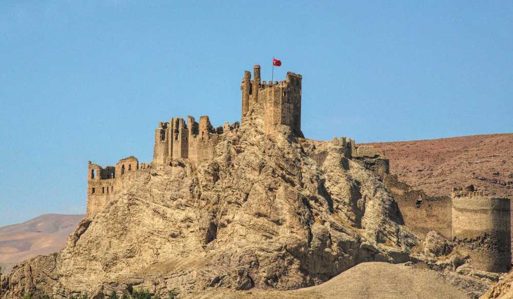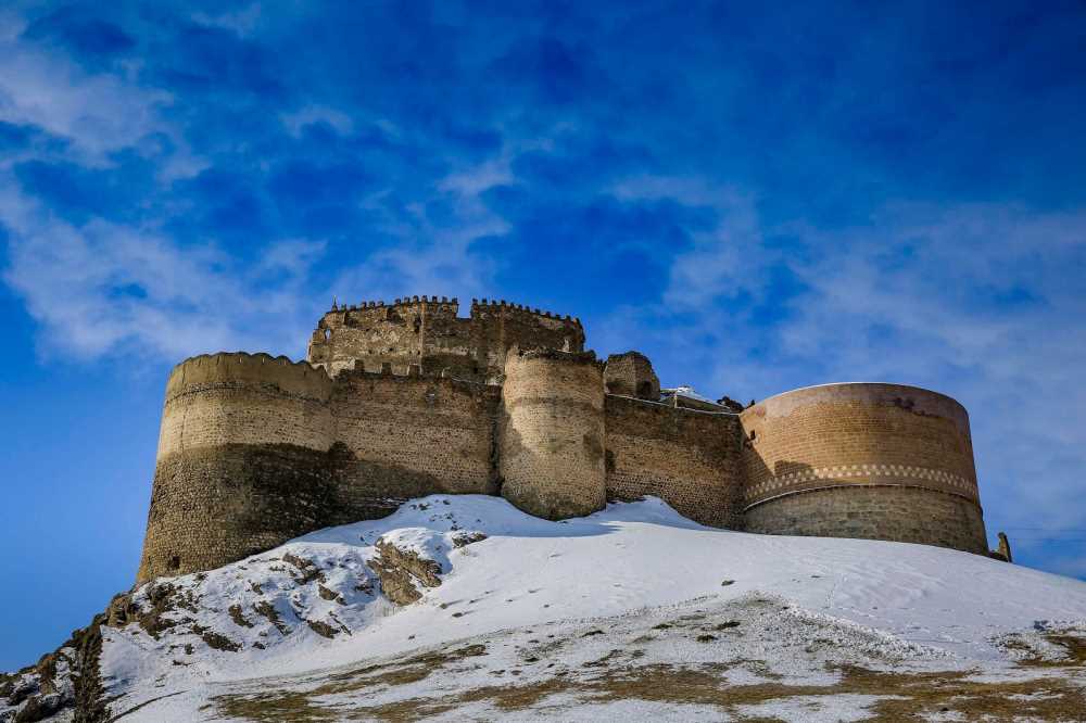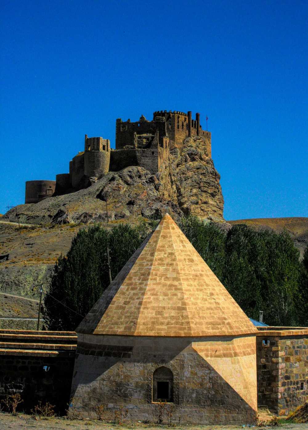 Hoşap Suyu’nun kuzeybatısında sarp ve dik bir kaya kütlesi üzerine kurulan kale, iç kale ile bunun kuzeyindeki dış kaleden oluşmaktadır. Geçmişi itibariyle Urartu Devleti'ne kadar uzanan kale, Osmanlı Devleti'ne tabi Mahmudi Beyleri'nin yaptırdığı şekliyle günümüze ulaşmıştır. İç kale giriş kapısı üzerindeki kitabesine göre Mahmudi Süleyman Bey tarafından, H. 1052 (1643) tarihinde yaptırılmıştır.