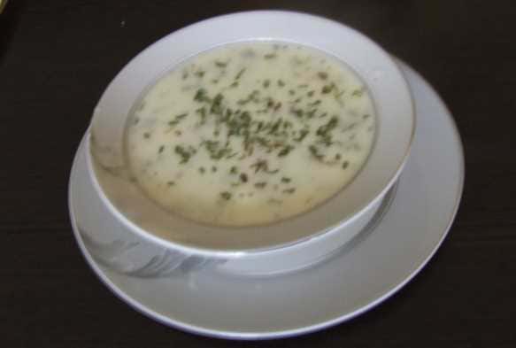 Yoğurt az miktarda su ile sulandırılır. Koyu ayran kıvamına getirilir. İçine bir adet yumurta, bir kaşık un ilave edilir. Sürekli karıştırılarak kaynatılır. Aksi taktirde ayranda çürüme olur. Önceden pişirilmiş den, küçük küpler halinde doğranmış kabak ilave edilir. Bir-iki taşım kaynatılır. İnce doğranmış evelik ilave edilir. Kabağı ve evelikleri pişince üzerine ince kıyılmış kişniş dökülür. Servis yapıldığı zaman isteğe göre üzerine tekrar kişniş ilave edilebilir. Arzuya göre Van Balığının her çeşidiyle servis yapılır.