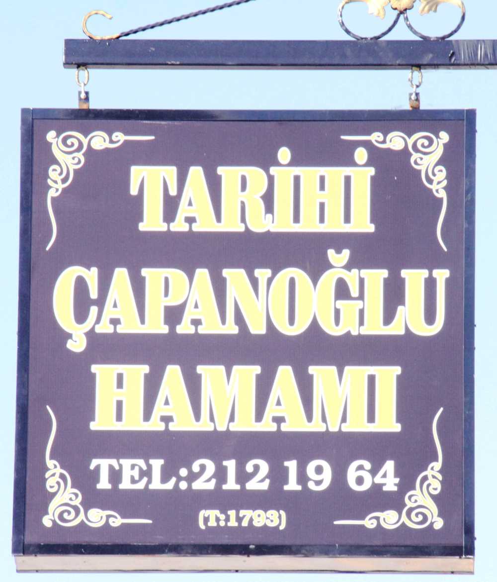 İl merkezinde bulunan Hamam Çapanoğlu Camii'nin güneydoğusunda ona 100 metre uzaklıktadır. Kitabesi yoktur. Yapı vakfiyesine göre tarihlendirilir. Erkekler kısmı Kapucubaşı Çapanoğlu Mustafa Bey’in vakfiye tarihi H. 1 Muharrem 1195 M. 28 Aralık 1780’den sonra, kadınlar kısmı Kapucubaşı Çapanoğlu Süleyman Bey tarafından H.1208 M. 1793’te yapılmıştır. Süleyman Bey’in vakfiyesinde geçen birinci (Eski Hamam) erkekler kısmı, ikinci hamam da kadınlar kısmı (hareme mahsus=kadınlar hamamı) olmalıdır. Hamamların ”L” şeklinde birleşmesi, külhanlarının ayrı olması ve halkın söylediğine göre iki ayrı tarihte yapıldığı anlaşılır. Yine vakfiye yerini tarif ederek Eski Hamam demesi bu hamamın daha önce, büyük olasılıkla da Mustafa Bey’in vakfiye tanzim tarihinden sonra yapıldığını gösterir. Ayrıca erkekler hamamının zemininden daha aşağıda olması da onun daha eski olduğunu gösterir. Erkekler ve kadınlar kısmından oluşan hamamın erkekler kısmı büyük, kadınlar kısmı küçüktür. Her iki yapı birbirine ‘L’ şeklinde birleşmiştir.