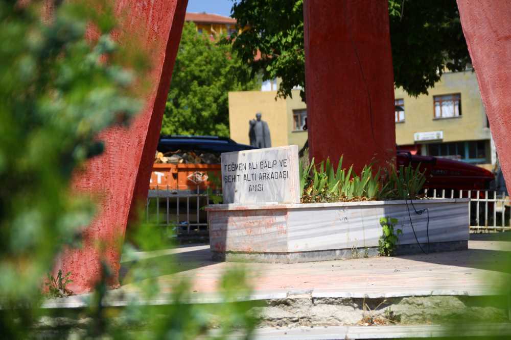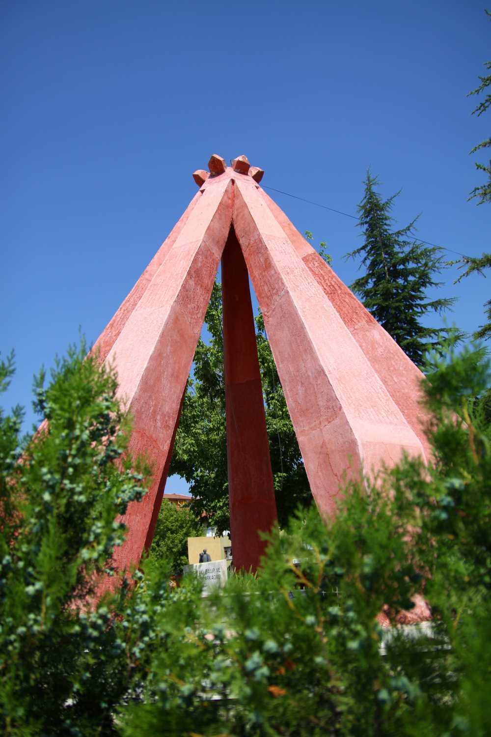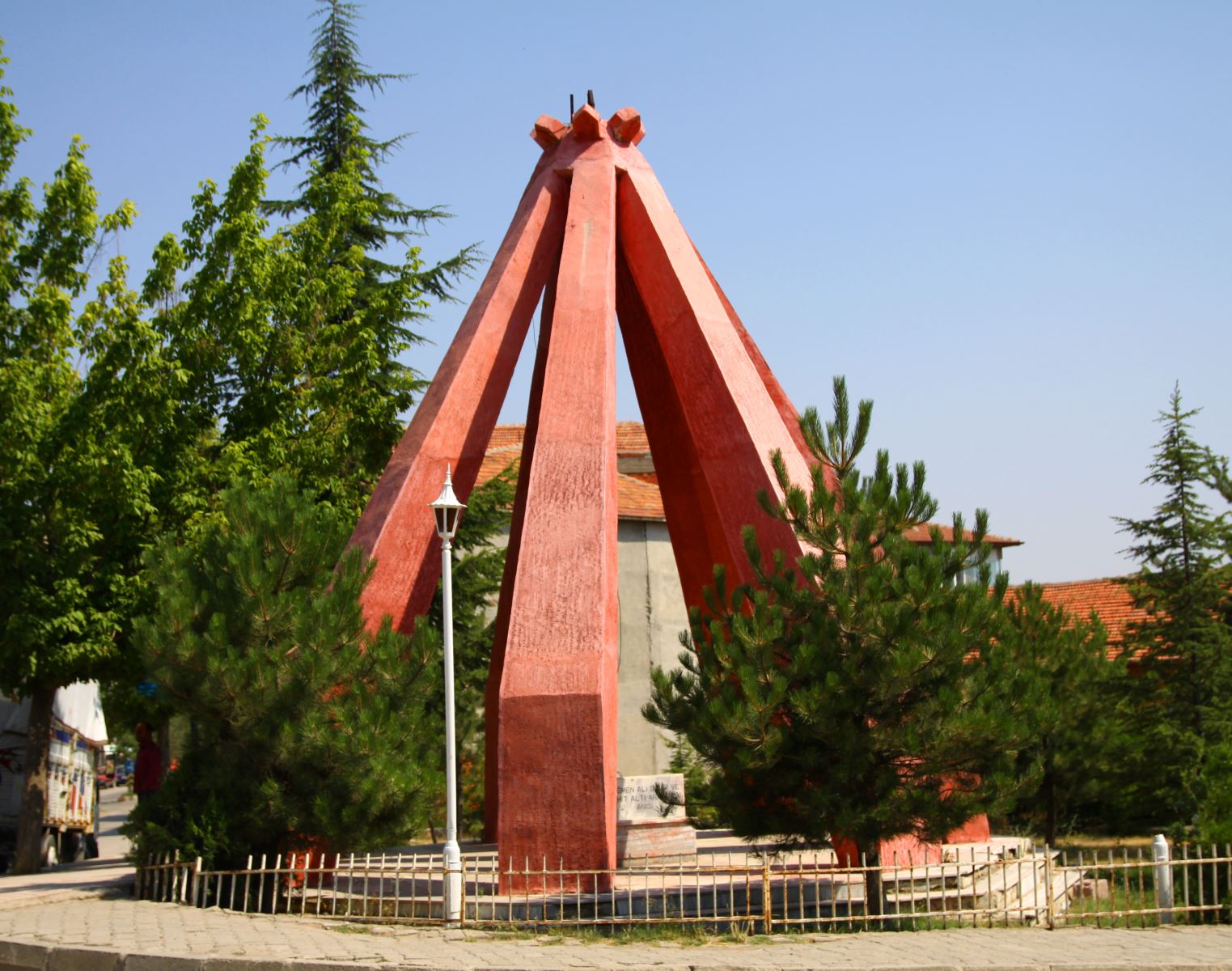 Bu abide Halen Cumhuriyet Meydanı'ndadır. 1984 yılında yenilenen abide, üçgen şeklinde yeşil saha içerisinde, etrafı kısa demir korkuluklarla çevrili çokgen mermer basamaklı kaide üzerinde yükselen 7 adet bloğun üçgen şeklinde üstte birleşmesiyle meydana gelmiştir. Bu blokların üzeri beyaz mermerle kaplı iken zaman içerisinde değişik dönemlerde tadilatlara uğramış ve son halini almıştır. Üst kısımda birleşen bloklar dışarı doğru bir yelpaze şeklindedir. Bu dilimlerin altında yerden yaklaşık yarım metre yükseklikte dikdörtgenler prizması şeklinde ve mermer kaplamalı kaidenin üzerinde kitabe mevcuttur. Söz konusu abide, Kültür ve Turizm Bakanlığı, Kayseri Kültür ve Tabiat Varlıklarını Koruma Bölge Kurulu'nca 1989 yılında tescil edilerek koruma altına alınmıştır.