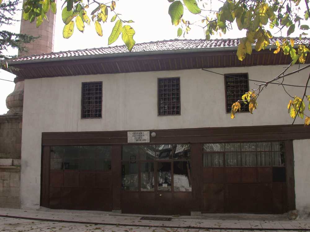 Yapı dışında pek süsleme ile karşılaşmayız. Kare kaideli, çokgen gövdeli, soğan biçimli topuklu, kademeli silmeli şerefeli, geç devir özellikli tipik minaresi ve çift katlı son cemaat yeri ile dikkatimizi çeker. Minarenin kuzey dibine Cevheri Ali Efendi kendisi için mezar yaptırmış fakat İstanbul’da ölmesi ile yerine anadan kardeşi Hacı Osman Ağa gömülmüştür. Mezarını yaptırdığı için onun hatırasına baş taşına adını ve vefat tarihini yazmışlardır.