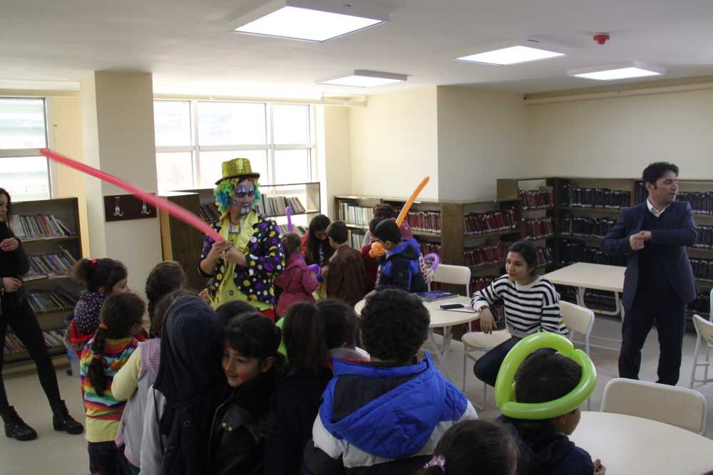 Bu yıl 52’ncisi kutlanan Kütüphaneler Haftası kapsamında Anaokulunda okuyan minik öğrencilerimiz kütüphaneyi ziyaret etti. Öğrencilere kitap okuma alışkanlığı kazandırma amacıyla düzenlenen etkinlikler çerçevesinde kütüphaneyi gezen anaokulu öğrencileri burada palyaço eşliğinde eğlenceli dakikalar yaşadılar. Anaokulu öğretmenleri ise “Kütüphaneler Haftası kapsamında öğrencilerimiz kütüphaneye getirerek onlarda bu bilinci oluşturmaya çalışıyoruz. Daha eğlenceli olması adına ise palyaço eşliğinde etkinlik düzenledik. Bu sayede öğrencilerimize kütüphane atmosferini göstererek burada kitap okumanın güzelliğini kavratmaya çalışıyoruz” şeklinde konuştular.