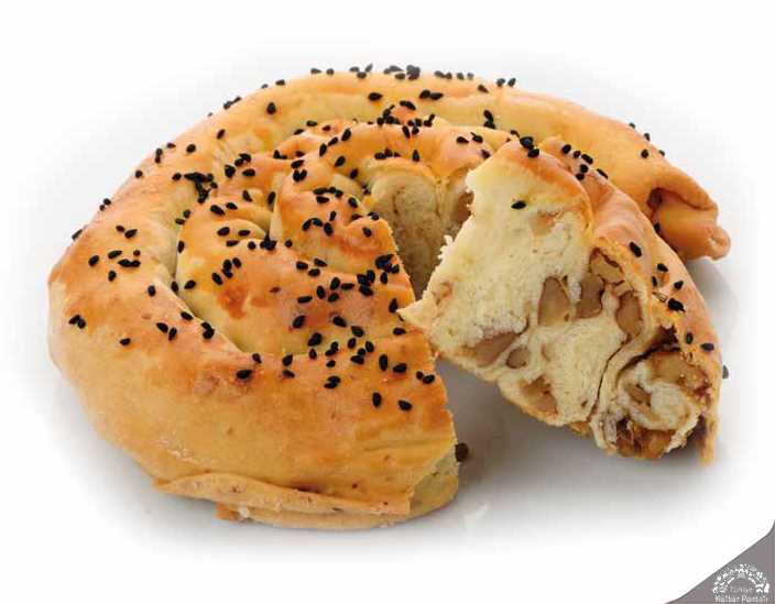 Rulo şaklinde sarınız ve yuvarlak yağlanmış tepsiye içten dışa doğru dönecek şekilde yerleştiriniz.